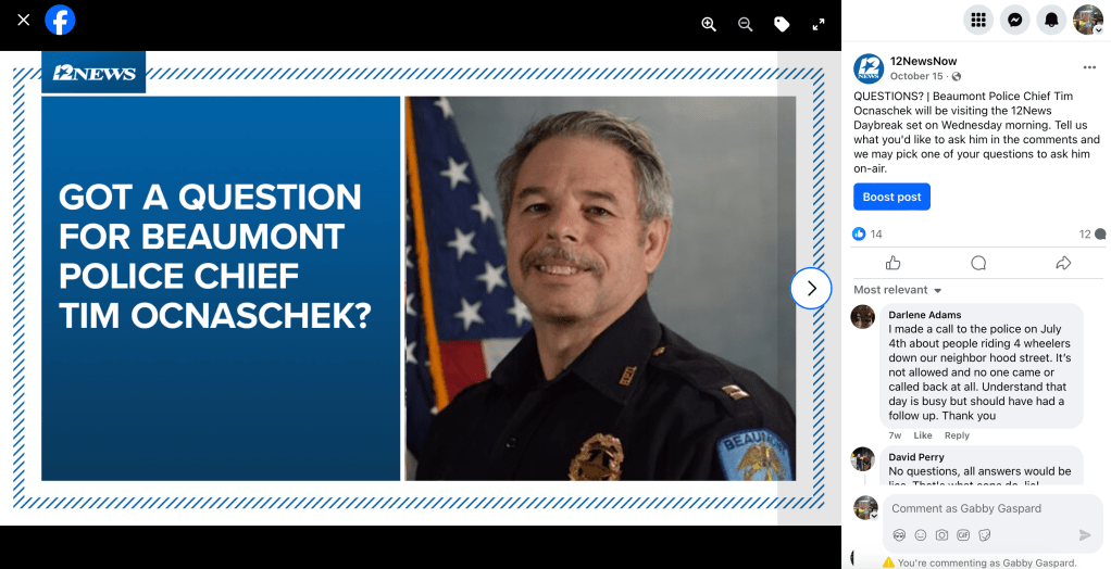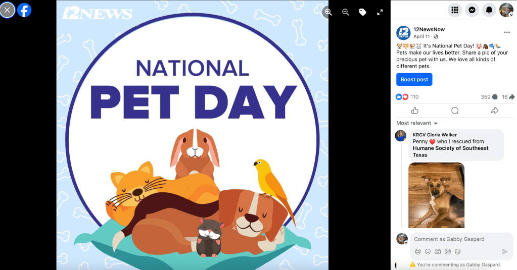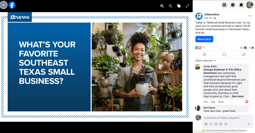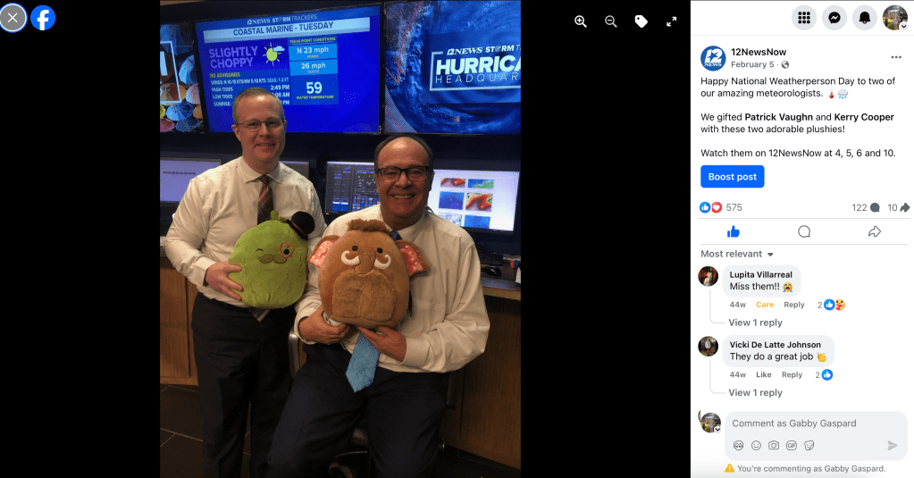 Professional Social Posts Posted byGabby GaspardDecember 11, 2024Posted inUncategorized This is a gallery of the social media posts I have made while working for 12News in Beaumont, TX. Share this: Share on X (Opens in new window) X Share on Facebook (Opens in new window) Facebook Like Loading... Related